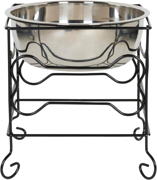 10-Inch Black Wrought Iron Stand with Single Elevated Stainless Steel Feeder Bowl